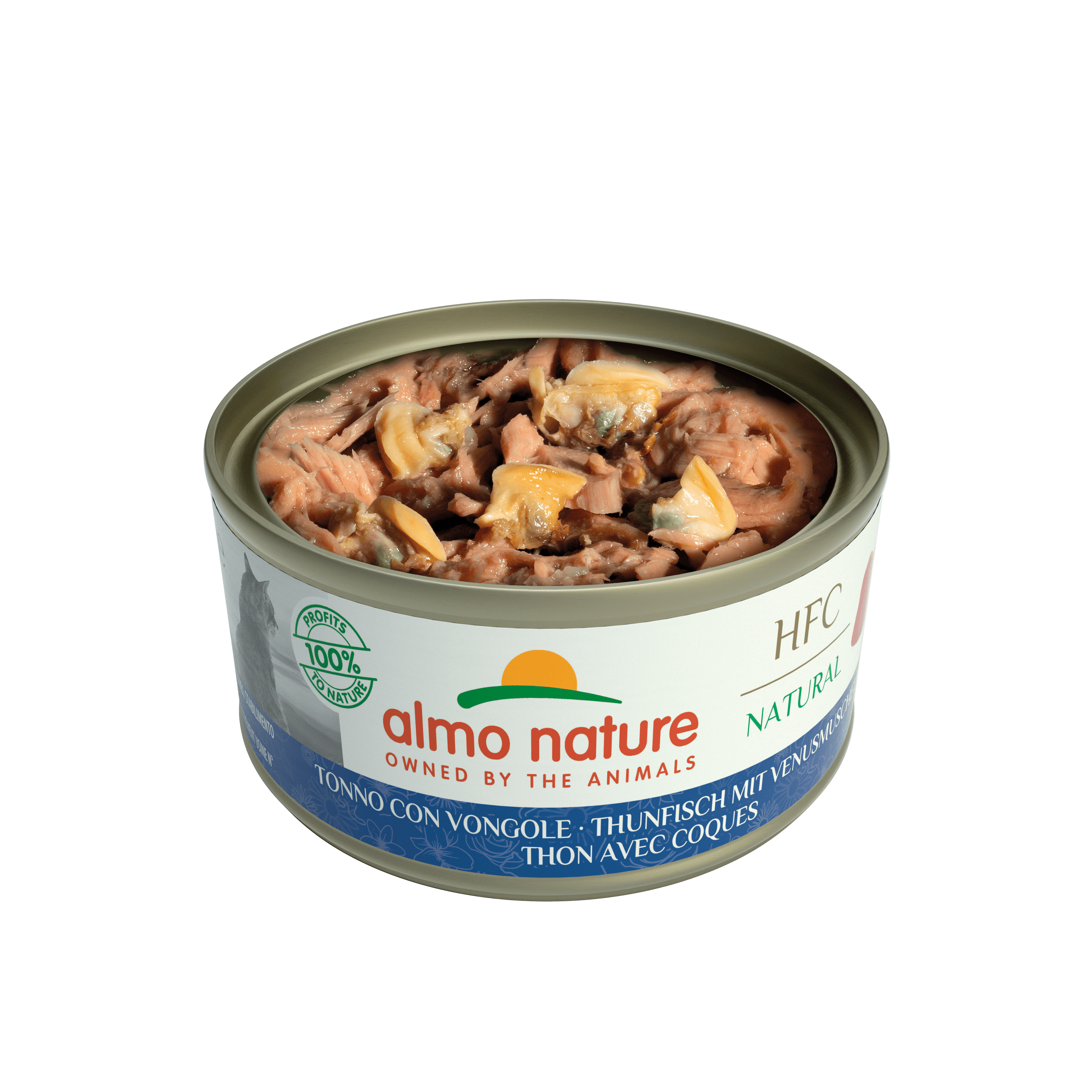 Almo Nature Thon coques garantit un apport naturel en protéines animales, pour un bon équilibre alimentaire. Cuites simplement au bouillon, sans additifs chimiques ni colorants alimentaires, les recettes Natural sont idéales pour l’hydratation naturelle du chat.