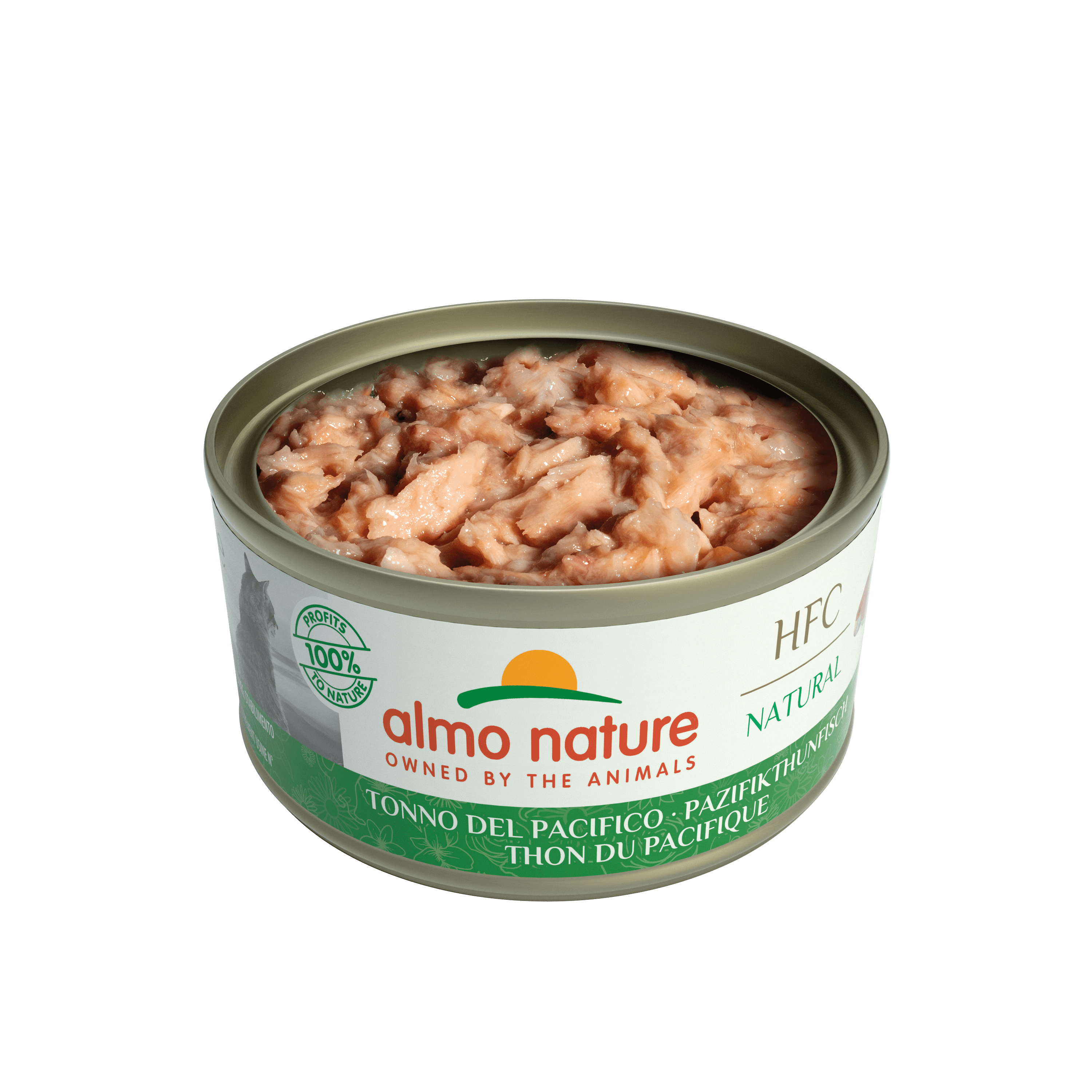 Almo Nature Thon du Pacifique garantit un apport naturel en protéines animales, pour un bon équilibre alimentaire. Cuites simplement au bouillon, sans additifs chimiques ni colorants alimentaires, les recettes Natural sont idéales pour l’hydratation naturelle du chat.
