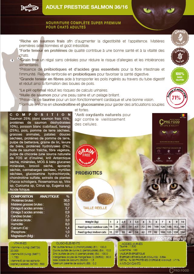 CProFood Adulte Prestige Saumon : croquettes sans céréales pour chats