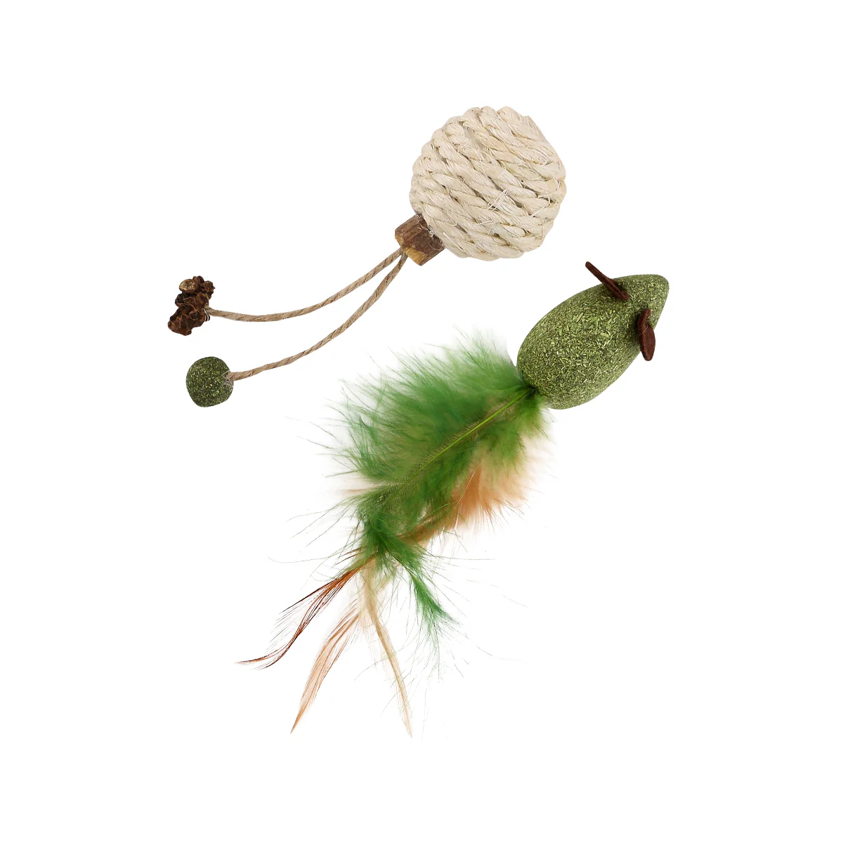 Le Duo Souris + Balle Sisal est un jouet conçu pour stimuler son instinct de chasse tout en favorisant son bien-être et sa détente.