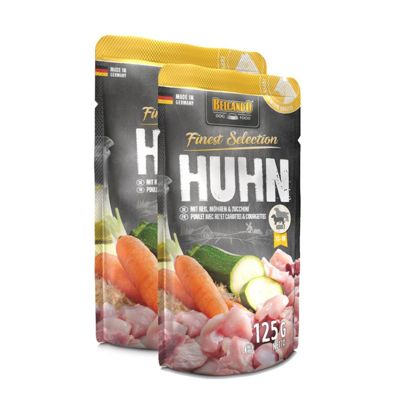 Belcando Finest Selection Poulet Riz Carottes Courgettes est un aliment humide pour chien sous forme de sachet fraîcheur.