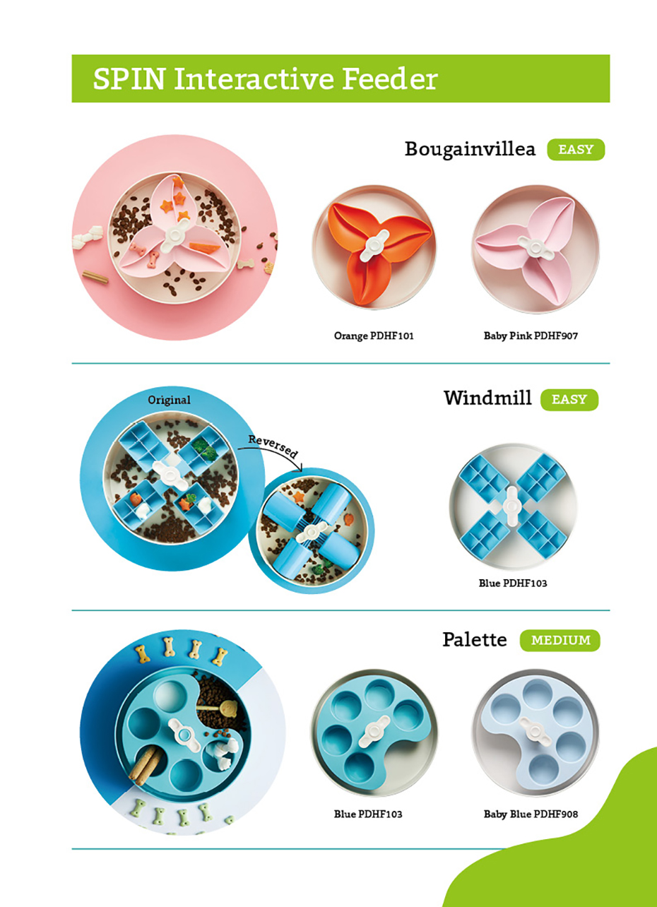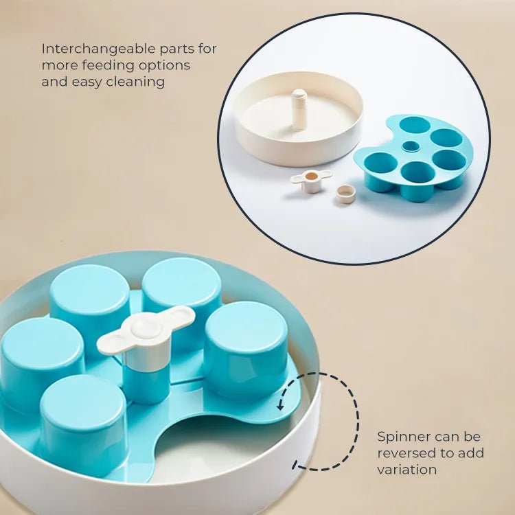La gamelle interactive Spin Palette anti-glouton a été créée pour rendre les repas de votre chien plus distrayants tout en ralentissant sa consommation alimentaire. Elle est dotée de compartiments pour séparer les différentes nourritures, cela permet à votre animal de découvrir de nouveaux aliments et l’encourage à manger plus lentement.