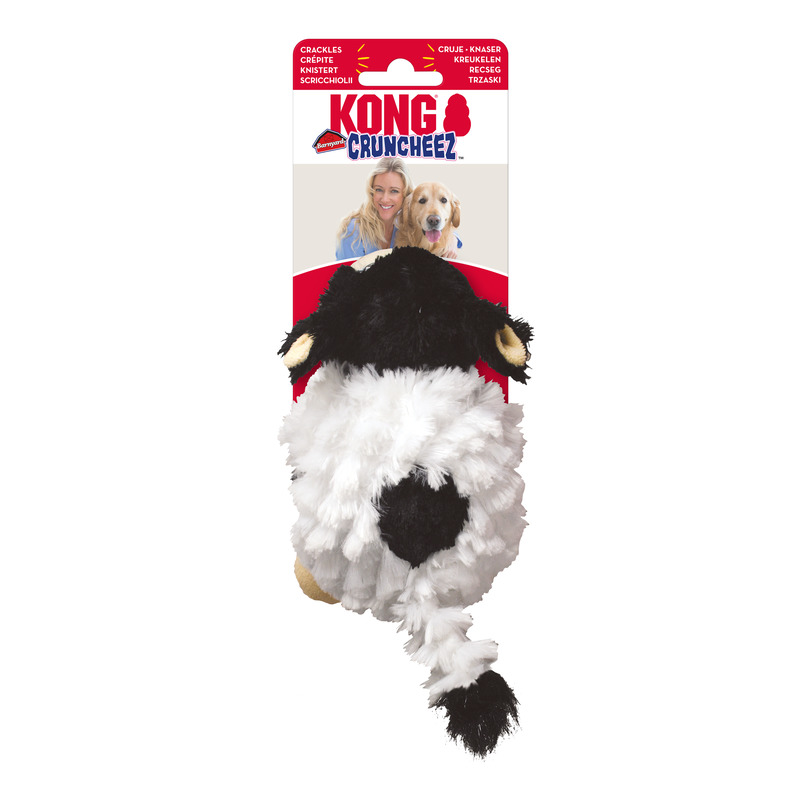 Le KONG Cruncheez Vache est une excellente alternative aux jouets sonores traditionnels. Lorsqu’on secoue le jouet, la bouteille intérieure produit un son de craquement qui attire l’attention des chiens. Si on appuie dessus, le Barnyard Cruncheez émet un son crépitant spécifique. Les chiens vont adorer ces adorables créatures en peluche de la ferme, parfaites à la fois pour se blottir et jouer.