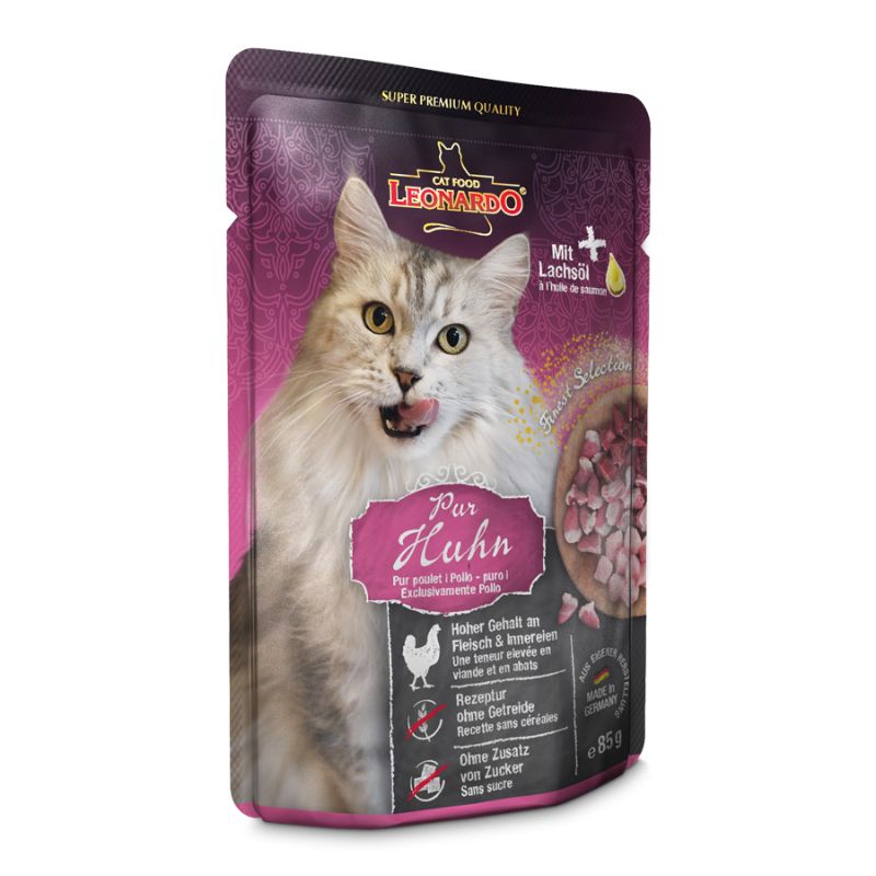 Leonardo Pur Poulet est un aliment humide sous forme de sachet fraîcheur pour chat adulte.