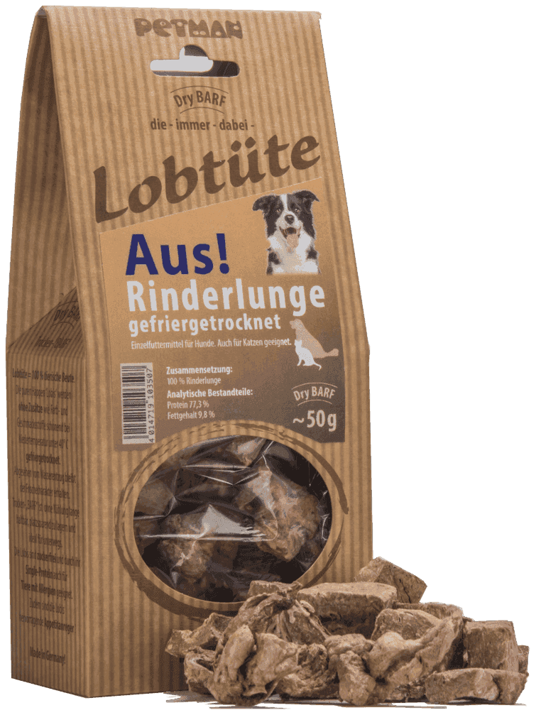 Les friandises Lobtüte sont fabriquées en Allemagne par Petman (info@hundt.org).