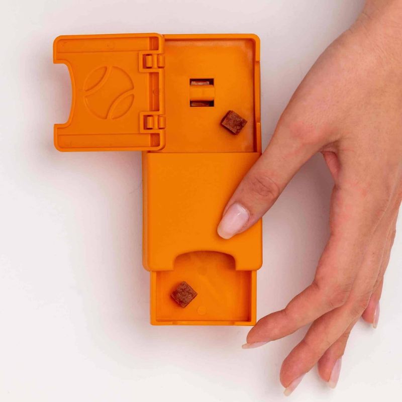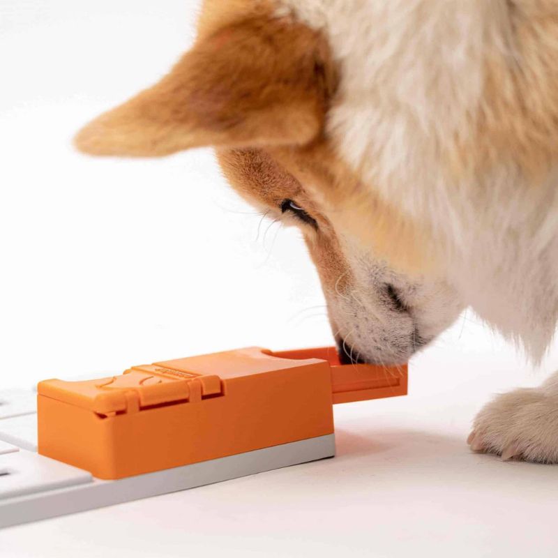 Ce pawzle dispose de deux mécanismes d’ouverture et occupe 2 emplacements sur la base. Votre chien doit d’abord soulever le couvercle, puis ouvrir le tiroir pour accéder aux friandises cachées. Il peut manipuler ce pawzle avec son museau, sa langue ou sa patte, ce qui stimule sa coordination et son sens logique.