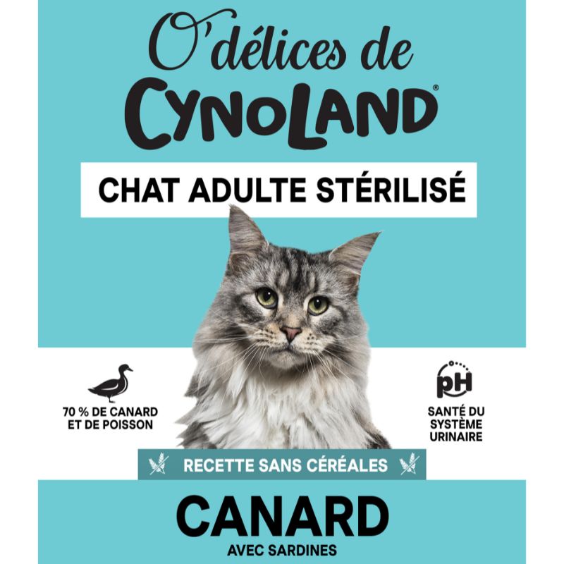 Ingrédients des croquettes sans céréales O’Délices de O’Délices de Cynoland Stérilisé Canard :