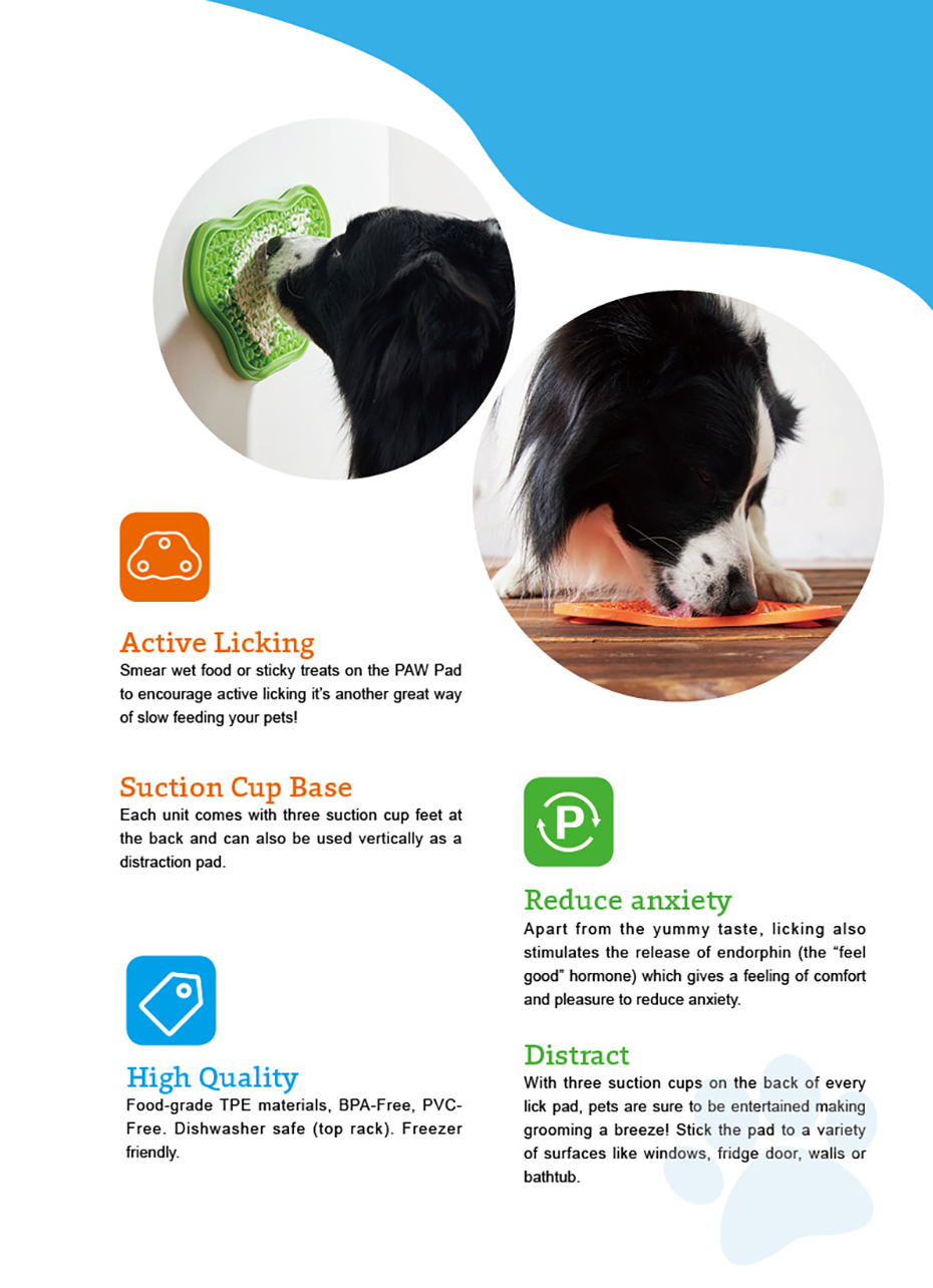 En effet, son utilisation de permet d’enrichir le quotidien de votre chien. Étalez dessus un aliment qu’il apprécie, ou sa nourriture humide. Il passera alors de longues minutes à lécher le tapis. Cela lui permet de s’occuper, mais aussi de se détendre, et de favoriser et récompenser ainsi le calme. Le tapis de léchage aidera l’anxiété de votre chien à diminuer.