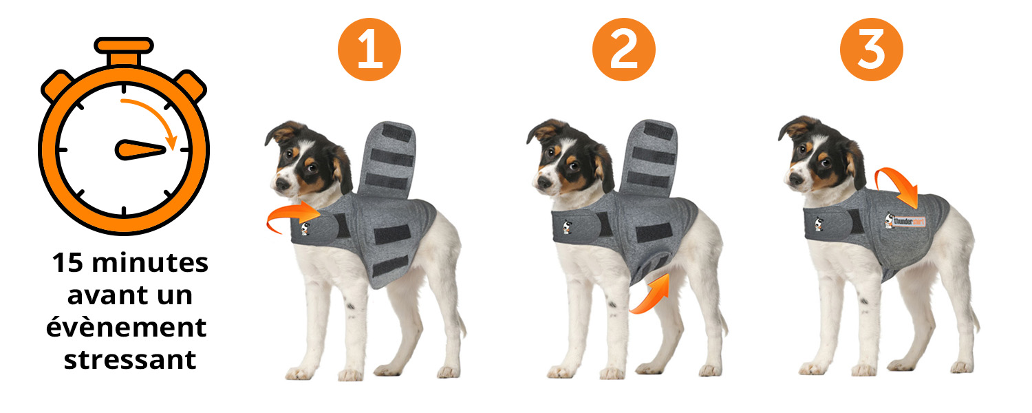 Attention : le Thundershirt ne se substitue pas à un travail comportemental avec un professionnel, ni à un avis vétérinaire. Il s’agit d’une aide complémentaire et alternative.
