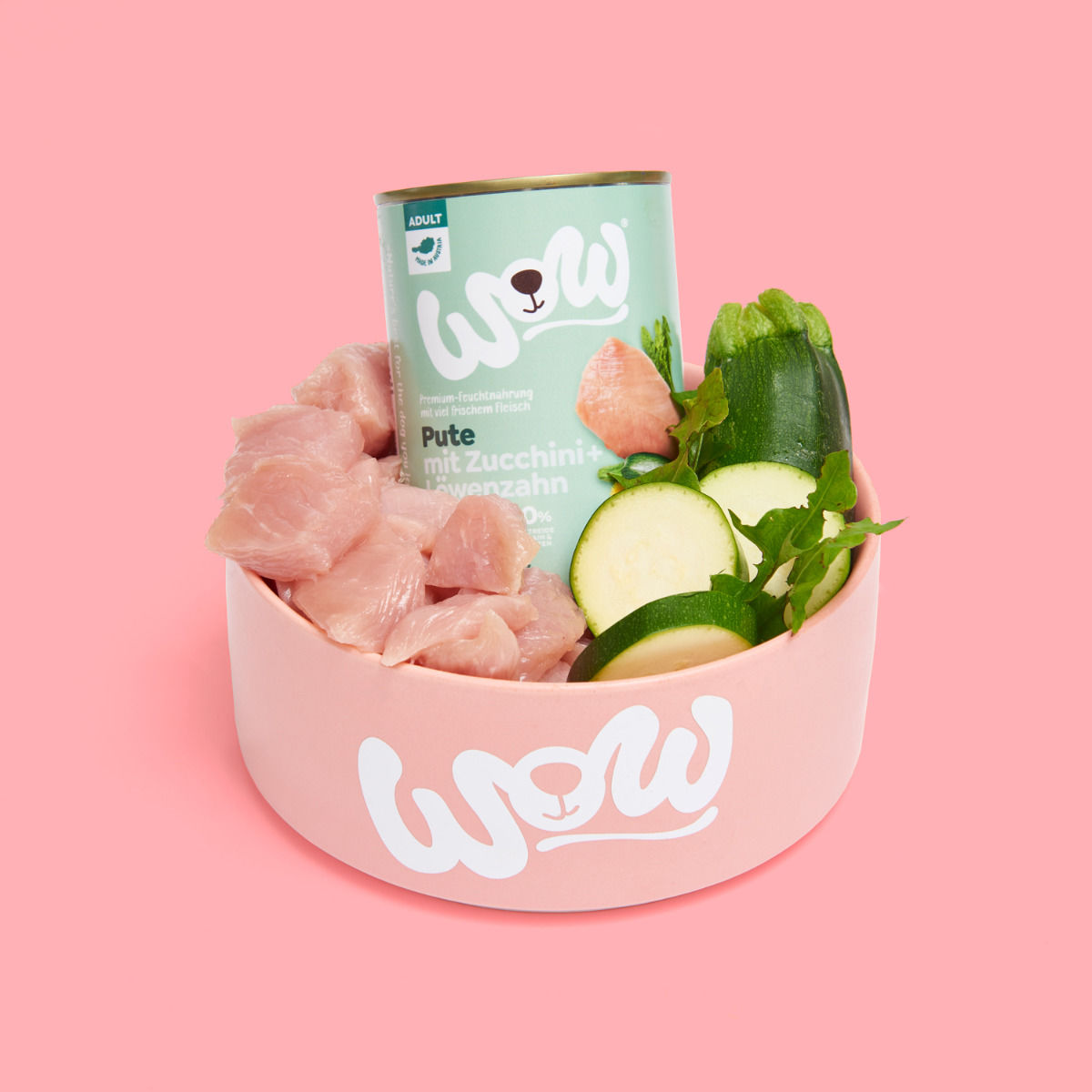 Composition de Wow Adulte Dinde avec Courgette et Pissenlits