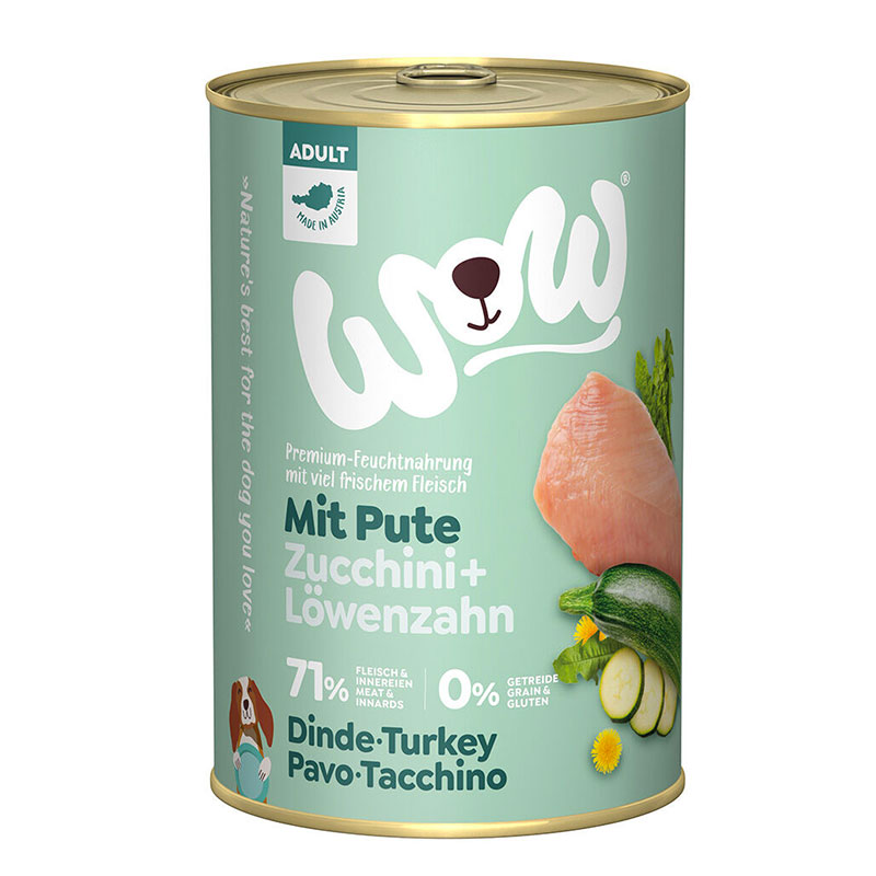 Wow Adulte Dinde avec Courgette et Pissenlits : aliment humide sans céréales